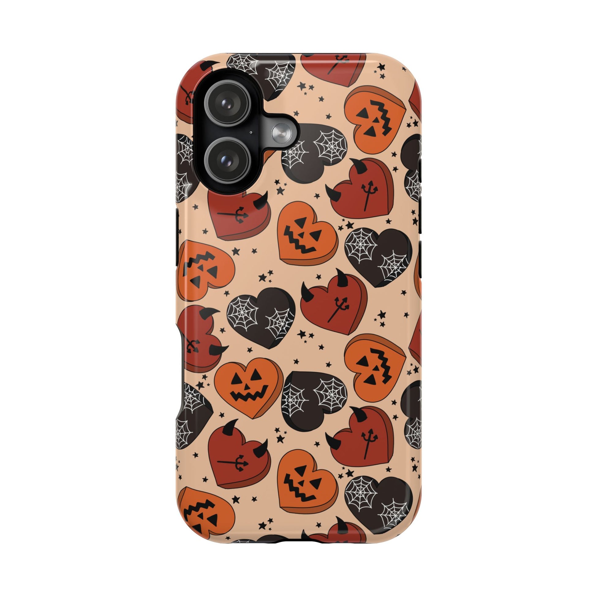 Halloween Magnetic Phone Case, Cute Halloween Phone Cover, Pumpkin and Devil Heart Case, Spooky Season Accessory, Unique Gift